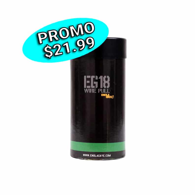 La grenade fumigène EG18 (verte) émet un nuage de fumée très dense et de couleur vive.
