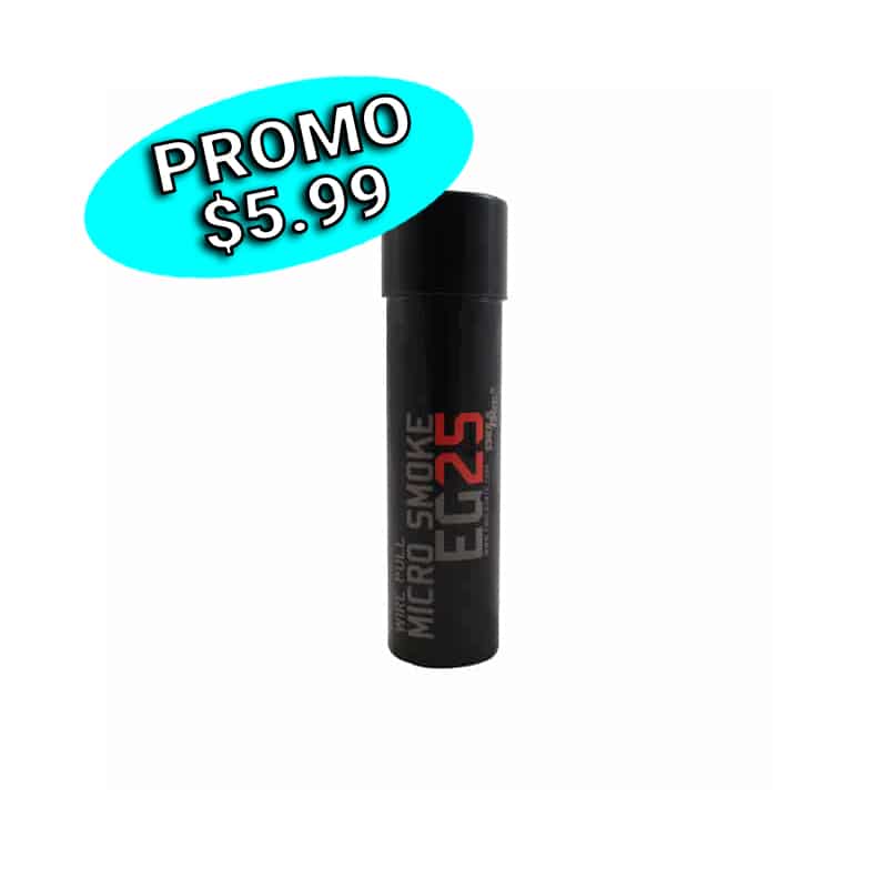 La micro grenade fumigène (rouge) EG25 est la plus petite et la plus rapide. Parfaite pour les joueurs d’Airsoft et de Paintball qui préfèrent une touche subtile. Elle est aussi très populaire pour les effets artistiques dans les films et la photographie. La durée est d’environ 30 secondes. La taille compacte permet de maintenir la grenade dans vos mains.