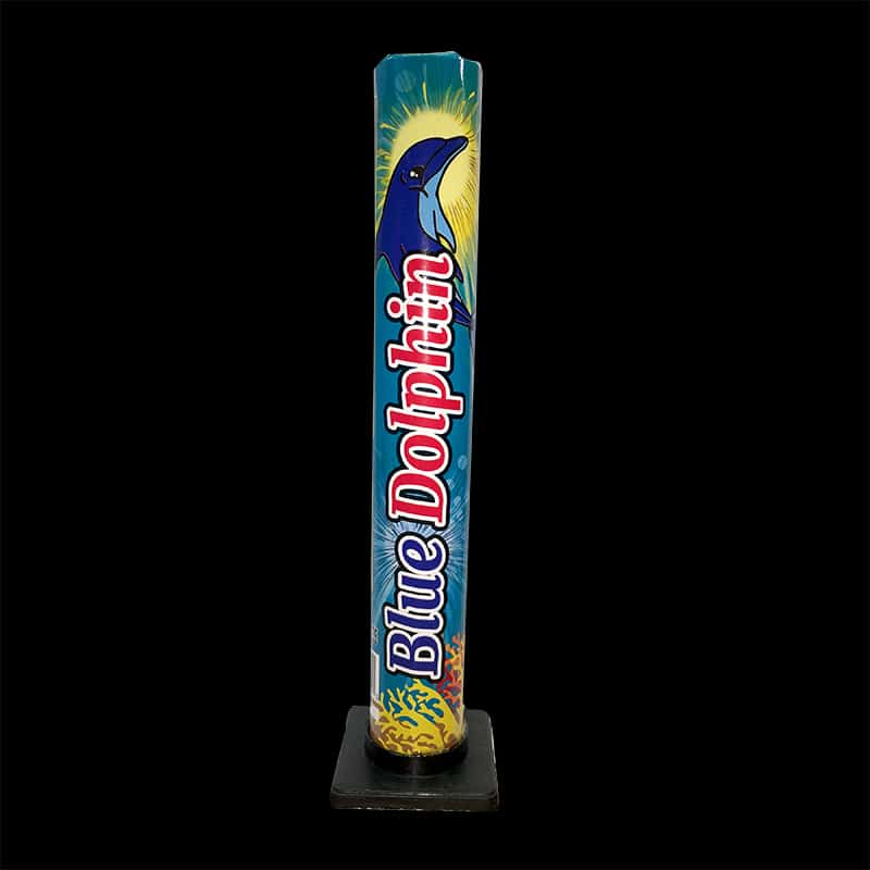 Mortier chargé d’une bombe offrant un saule crépitant à étoiles bleues.