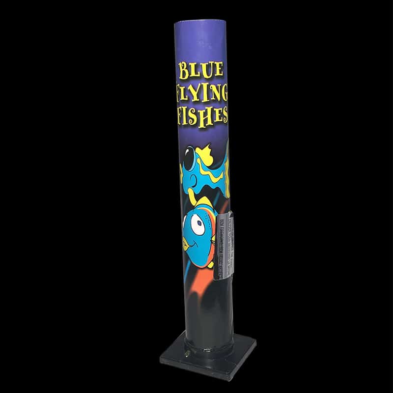 Lance à 30 mètres une bombe d’étoiles bleues avec poissons volants argent.