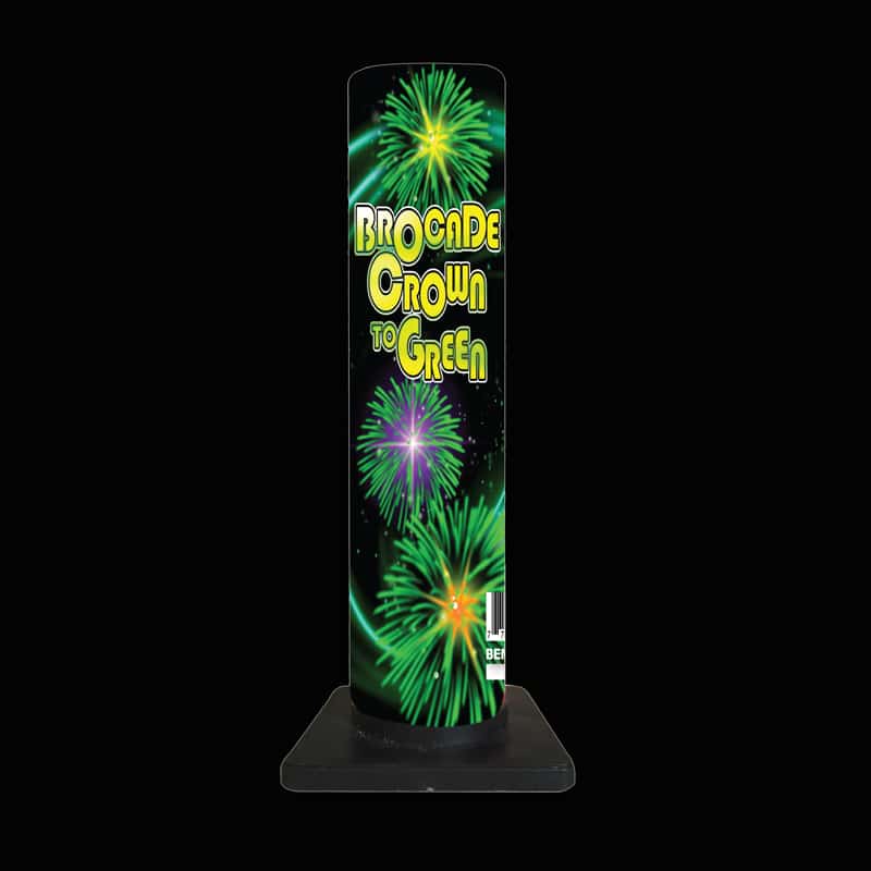 Lance à 40 mètres une bombe à couronne brocart changeant à étoiles vertes.